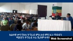 አቦ መንበር ህውሓት ዶ/ር ደብረጽየን ገብረሚካኤልን አቶ አለም ገብረዋህድን ምስ ስነ ጥበብዊያን ተወላዶ ትግራይ ኣብ ዘካየድዎ አኼባ ንዝቀረበሎም ሕቶታት ኣብ ዝሃብዎ ምላሽ ነዚ ዝበሉ፡ ንዝሓለፈ 17 ዓመታት’ታ ሃገር ኣብ ዝነሃረ ለውጢ’ያ ኔራ ሕጂ ካልእ ሓድሽ ለውጢ ዝስምዓሉን ዝረአየሉን ምኽንያት ፈጺሙ የለን ክብሉ’ውን ብዛዕባ ኣብ ኢትዮጵያ ዝረአ ዘሎ ኩነታት አቶ አለም ገብረዋህድ ተዛሪቦም ኣለው።