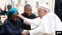 ብጥሩፋት ጉጅለ ቦኮ-ሓራም ኣብ ናይጀሪያ ተጨውየን ነይረን ድሕሪ ነዊሕ ምክልባት ዘምለጣ ክልተ ደቀንስትዮ ምስ ርእሰ ሊቃነ-ጳጳሳት ካቶሊካዊት ቤተ-ክርስትያን ፍራንሲስ ተራኺበን፡ተዘራሪበን።