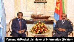 ናይ ሶማልያ ፕረዚደንት መሓመድ ዓብዱላሂ፡ ንናይ ክልተ መዓልታት ወግዓዊ ምብጻሕ ሎሚ ኣስመራ ኣትዩ`ሎ- ብእኡ ንብእኡ`ውን ኣብ ቤተ-መንግስቲ ምስ ፕረዚደንት ኢስያስ ኣፈወርቂ ቀዳማይ ርክቡ ኣካይዱ`ሎ።