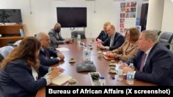 ኣብቲ ጋዜጣዊ መግለጺ ናብ ኣፍሪቃ ተጓዒዛ ኣብ ርክብ ኣፍሪቃዊ ሕብረት ዝተረኽበት ምኽትል ጸሓፊት ጉዳያት ኣፍሪቃ ሞልይ ፊ፡ ፍሉይ ልኡኽ ኣመሪካ ኣብ ጉዳያት ቀርኒ ኣፍሪቃ ኣምባሳድር ማይክ ሃመርን ኣምባሳድር ኣመሪካ ኣብ ሱዳን ጆን ጎንፍረይን ተረኺቦም መብርሂ ሂቦምን ካብ ጋዜጠኛታት ንዝቐረበሎም ሕቶታት መሊሶምን።
